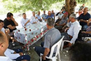 Başkan Lütfü Savaş’a, Yayladağı ilçesindeki temas ve ziyaretleri sırasında, CHP Yayladağı İlçe Başkanı Hayrettin Hançar ile eski İlçe Başkanı Nevzat Gonca da eşlik etti. -Cemil Yıldız-