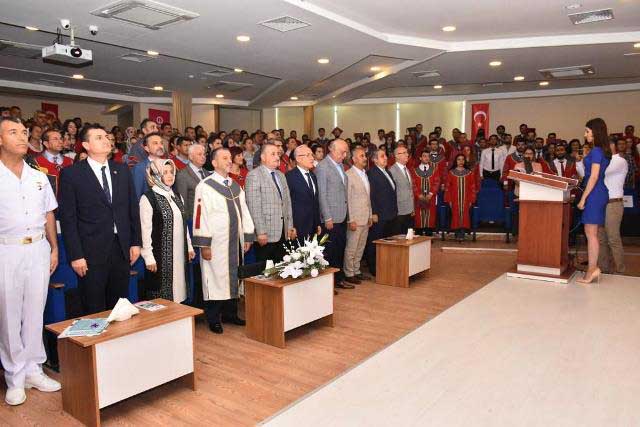 “Ünlü düşünür Seneca, ‘başlayan her şey biter’ der. İşte bugün burada ön lisans ve lisans eğitimi süreciniz bitti. Acısıyla tatlısıyla, hiç bitmeyecek gibi gözüken okulunuz bitti. Hayırlı uğurlu olmasını diliyorum. Şimdi sizin için yeni bir sayfa açılıyor. Sizlere yürekten inanıyoruz. Yolunuz ve bahtınız açık olsun.”