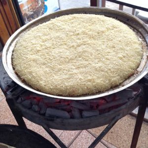 Antakya Ticaret ve Sanayi Odası (ATSO) tarafından tescillenen tatlı adına konuştuğumuz isim ise, közde pişen künefenin iki ustasından biri, Mustafa Sertbaş. “Tam 18 sene oldu…” diyen Sertbaş, “Tam 18 senedir, köz ateşinde, bakır tepside künefe pişiriyorum. Malzememiz mi? Halis köy peyniri ve halis köy tereyağı… Zaten bizim künefenin bu kadar talep görmesi de, dikkat çekmesi de sahip olduğu doğallığından. Zira hiçbir katkı maddesi yok. Damağınızda bıraktığı o eşsiz lezzetin sihri de buradan!” şeklinde konuştu, “Özen şart” diye de ekledi.