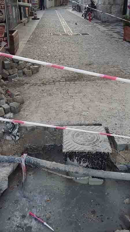 Bu çalışmanın en göze görünür hali, Antakya’nın trafiğe kapalı caddesinin Vakıf İşhanı noktasında yer alıyor. Zemine monte edilmek istenen ‘otomatik’ işleyen ‘duba’ düzeneğini işaret eden vatandaşlar konuşsun…