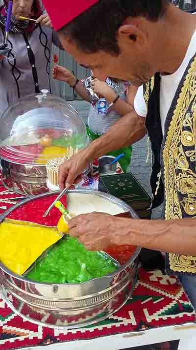 Gelelim, macunun tahta çubuğa sarılmasının sebebine! Osmanlı macununun tamamen doğal olduğunu ve renklendirici içermediğini ispat etmek amacıyla, tahta çubuklar tercih edilmiştir. Aksi takdirde, renklendiriciler çubuğa geçecek ve hileli ürün olduğu ortaya çıkacaktır. Antakya’nın trafiğe kapalı Hürriyet Caddesi’nde macun şekerinin rengarenk dünyasını Manisa’dan şehri-mize getiren tezgahın başında duran çocuk kalabalığı işaret edenlerin mesajı net… “Sunumuyla adeta görsel bir şölen yaşatan macun şekerini Ramazan haricinde bulmak çok zor. Hazır vakti gelmişken, mutlaka tadın!” -Tamer Yazar-