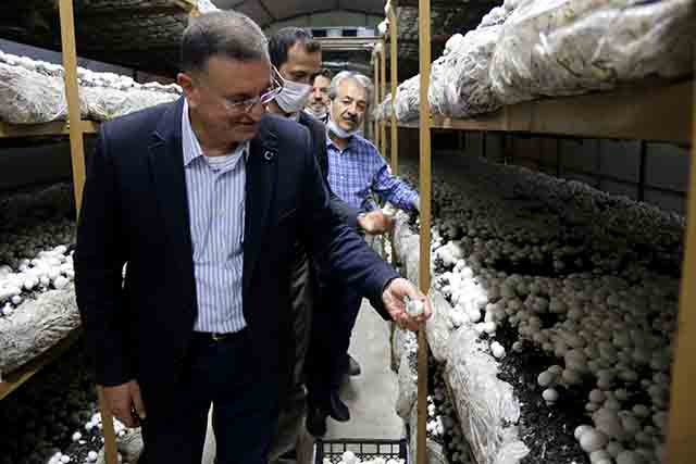 Hatay Büyükşehir Belediye Başkanı Lütfü Savaş, Yayladağı ilçesinde mantar üretim tesislerinde incelemelerde bulundu.