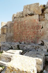 Buradan soralım… Büyükşehir Yasası ile 1500 yıllık Saint Simon Manastırı’na sahip olan ve Samandağ Kaymakamlığı’nın iade talebine ‘oybirliği’ ile ‘HAYIR’ cevabı veren Defne Belediyesi’nin Başkanı Sayın İbrahim Yaman’a… Bu kentin tarihine ve kültürüne dair yaşanan onca soruna, haber başlığına ve keşfe rağmen konuşmayan Hatay İl Kültür ve Turizm Müdürlüğü’nün tepesindeki isme, Sayın Hüsnü Işıkgör’e… 2014 Aralık ayında hizmete giren yeni Müze binasının yaşadığı sorunları temelinde sıkça haberlerimize konu ettiğimiz Hatay Arkeoloji Müzesi’nin Müdürü Sayın Nalan Yastı’ya… Bu kentin sahip olduklarının sunumunda, tanıtımında, bakımında, korunmasında yaşanan tüm aksaklıkları ilk elden takip etmesi gereken Hatay Valiliği’ne… Ve hepsinden öte, Ankara’ya, Kültür ve Turizm Bakanı Mehmet Nuri Ersoy’a…