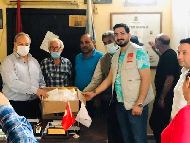 “Reyhanlı Sanayi, Tornacı, Makinistler Esnaf ve Sanaatkarlar Odası başkanı Süleyman Sırrı Ataş’e sanayideki esnaflarımıza dağıtmak üzere, kadın kolları başkanımız ve ilçe yöneticilerimiz ile birlikte, kendi imkanlarımızla imal ettiğimiz maskelerimizi teslim ettik.”