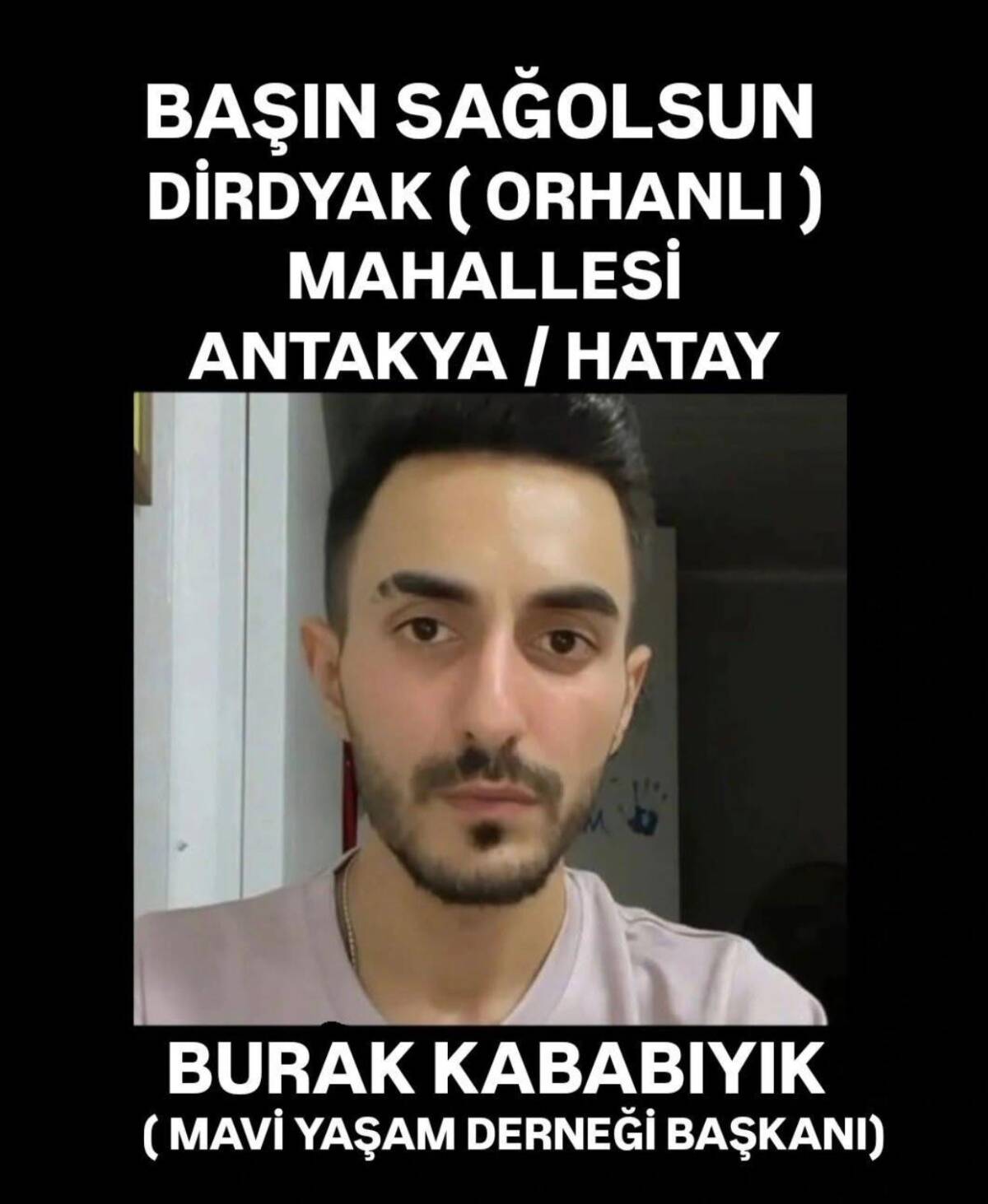 Hatay’ın Antakya ilçesine bağlı Dirdyak (Orhanlı) Mahallesi sakinlerinden, Leyla ve Riyad Kababıyık’ın oğlu, Mavi Yaşam Derneği Başkanı Burak Kababıyık vefat etti.