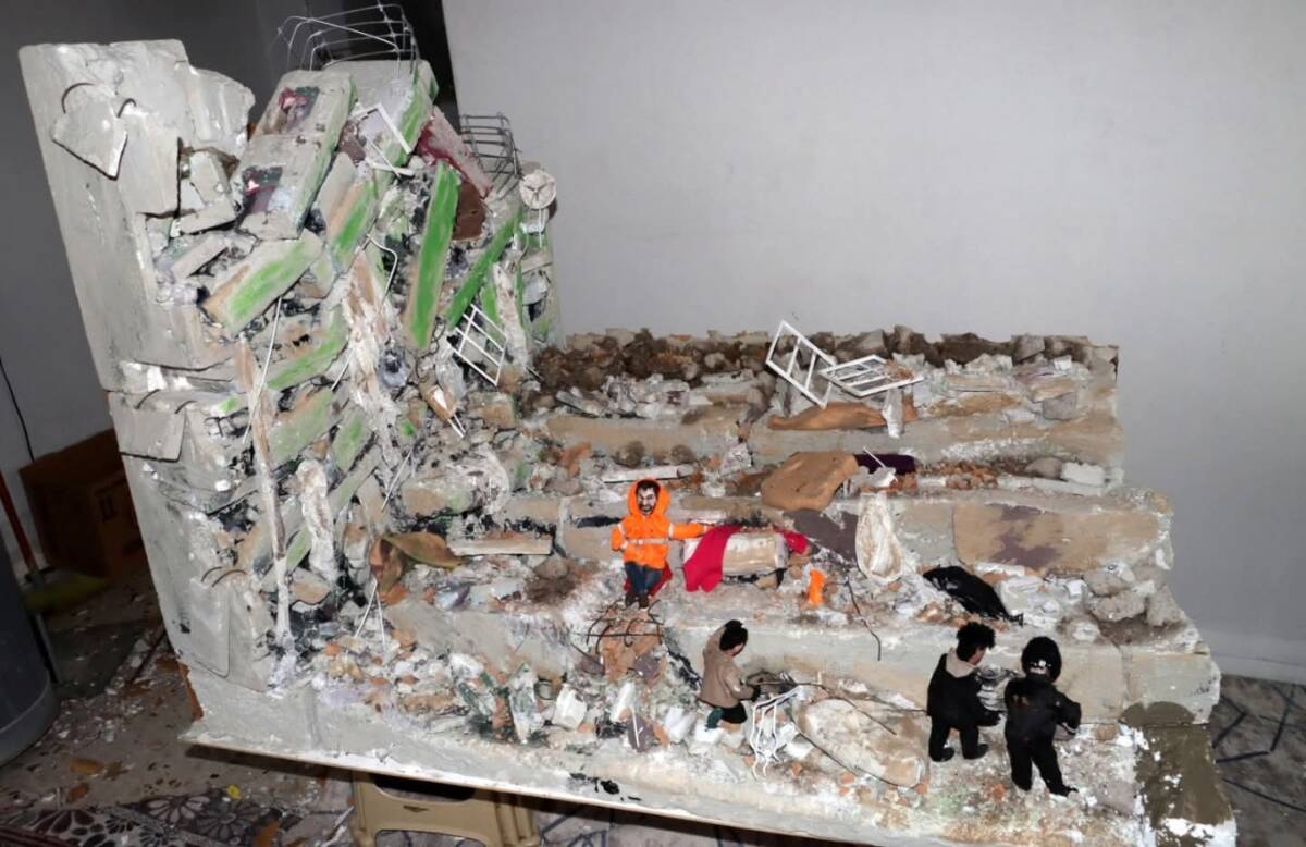 “Yaşanan acı gerçekten çok büyüktü ve hepimizi derinden etkiledi. Uzun zamandır depremle ilgili bir çalışma yapmayı planlıyordum. Geçtiğimiz günlerde böyle bir eser yapmaya karar verdim. Başında yer alan deprem karelerinden esinlenerek ortaya çıkardığım çalışmanın her detayını yerleştirirken çok duygulu anlar yaşadım.”