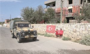 Öte yandan, Reyhanlı ilçesinde sınırda bulunan mahalle de Türk bayraklarıyla donatıldı. Vatandaşlar evlerine Türk bayrakları asarken çocuklar da bölgeden geçen askeri araçlardaki personele sevgi gösterisine bulunup, ”En büyük asker bizim asker” sloganları attı.