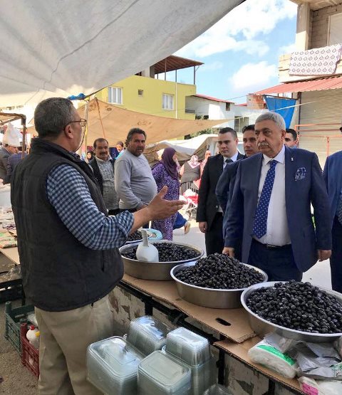 “81 İlden Gelen Esnaf ile Buluşma” programı kapsamında Gümrük ve Ticaret Bakanı Bülent Tüfenkci ve Türkiye Esnaf ve Sanatkarları Konfederasyonu (TESK) Genel Başkanı Bendevi Palandöken yanı sıra 81 ilden gelen Esnaf Oda Başkanları Hatay’a geldi. Protokol görüşmeleri ardından beraberindeki kalabalık bir heyetle Reyhanlı ilçesine geçen Bakan Bülent Tüfenkci, ilçede kurulan bir pazarı ziyaretinde esnafla bir araya geldi, sohbet etti, hayırlı işler diledi. Pazar esnafı ve vatandaşlarla sohbet eden Tüfenkci, ürünler hakkında bilgi almayı da ihmal etmedi.