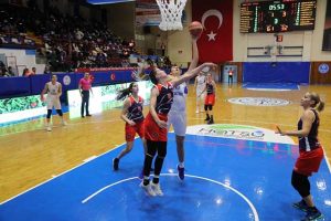 Hatay Büyükşehir Belediyesi Kadın Basketbol Takımı, Süper Lig’de ligin zayıf ekibi Adana Güngörenspor’u 103-49 gibi açık bir farkla yendi. 17 Mart Pazar günü Antakya Spor Salonu’ndaki maçta, Hatay’ın Melekleri, ilk çeyreği 24-19 ve devreyi de 50-27 önde tamamladı. İkinci çeyrekte de yüksek yüzdeli oynayan ve rakibine fazla sayı şansı tanımayan Mavi-Beyazlılar, soyunma odasına 50-27 üstün girdi. İkinci yarının her iki periyodunda da üstün bir oyun sergileyen Hatay’ın Melekleri, 3. çeyreği 80-35 önde, maçı da 103-49 galip kapattı. -Cemil Yıldız-
