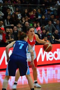 EUROCUP’ta yarı finale kalarak tarihi bir başarıya imza atan Hatay’ın melekleri, 24 Mart Cuma günü Kayseri Kadir Has Spor Salonu’nda karşılaştığı Abdullah Gül Üniversitesi’ne (AGÜ) ilk çeyrekte 14-18’lik skorla üstünlük sağladı. İkinci çeyrekte de hızlı başlayan Melekler, soyunma odasına 34-25’lik skorla önde girdi.