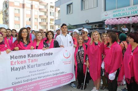 Yürüyüş sırasında, Sağlık Bakanlığı tarafından hazırlanan ‘Sakın Geç Kalma Erken Gel’ türküsü Mobil Sağlık Platform Sistemi aracından halka duyuruldu, katılımcılar da türküye alkışlarla eşlik etti. Antakya İlçe Sağlık Müdürlüğü önünden başlayıp Lütfü Rifaioğlu Caddesi, Atatürk Caddesi ve Fatih Caddesi güzergahında devam eden yürüyüş, Cumhuriyet Caddesi’nden geçilerek Antakya İlçe Sağlık Müdürlüğü önünde sonlandı. Yürüyüş sonunda, Antakya İlçe Sağlık Müdürü Dr.Ayşe Betül Altun Sovukluk tarafından, 40-69 yaş arası tüm kadınlar, “kanserde erken teşhis hayat kurtarır” vurgusuyla KETEM’e (Kanser Erken Teşhis Tarama ve Eğitim Merkezi) davet edildi.-Cemil Yıldız-