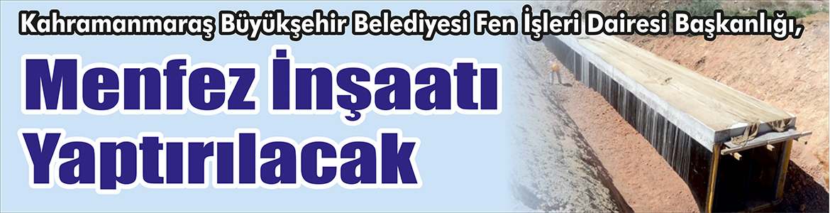 Kahramanmaraş Büyükşehir Belediyesi Fen İşleri Dairesi Başkanlığı, Menfez inşaatı yaptıracak.