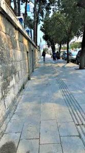 “Duvarlar ‘yıkım’ tehlikesi oluşturduğundan… Bu uyarının 2017’deki sahibi, Antakya PTT Başmüdürlüğü. Ancak bu uyarının bir devamı da var! “Kaldırım, kısmen yaya trafiğine kapatılmıştır!” Duvarlarda yaşanan ‘şişme’ ve bazı taşların bulundukları yerden kopup kaldırıma düşmesi ise sürecin korkutan kısmı. Önceki gün çektiğimiz fotoğraf karesinde, 2017’de uyarılan duvarda gerçekleştirilmeyen güvenlik düzenlemesi nedeniyle yaşanan ‘şişme’ artık çıplak gözle de görülebilir nitelikte.