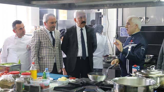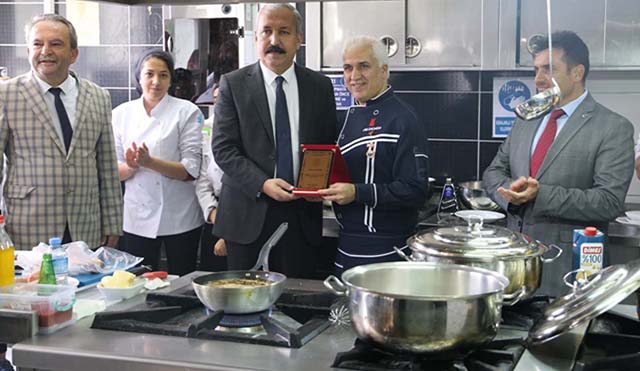 İl Milli Eğitim Müdürü Kemal Karahan, etkinliğin 2 gün sonrasında Arsuz Uluçınar Mesleki ve Teknik Anadolu Lisesi’ni ziyaret ederek, okulla ilgili bilgileri aldıktan sonra, uygulama mutfağını ziyaret etti. Şef Ali Demir ve öğrencilerin yaptıkları birbirinden lezzetli yemek ve tatlılar hakkında bilgi alan İl Milli Eğitim Müdürü Kemal Karahan, Şef Ali Demir’e, okul ve öğrencilere katkılarından dolayı teşekkür etti ve plaket takdim etti. -Cemil Yıldız-