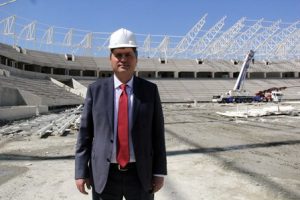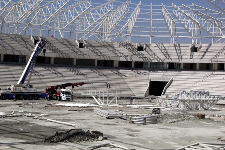 Beton işlerinin büyük çoğunluğu bitmiş durumda olduğunu, dış cephe ve üst çatı kaplamasının bitmesini beklediklerini belirten Şensöz, müsabaka alanının doğal çim ile kaplanacağını ifade etti.