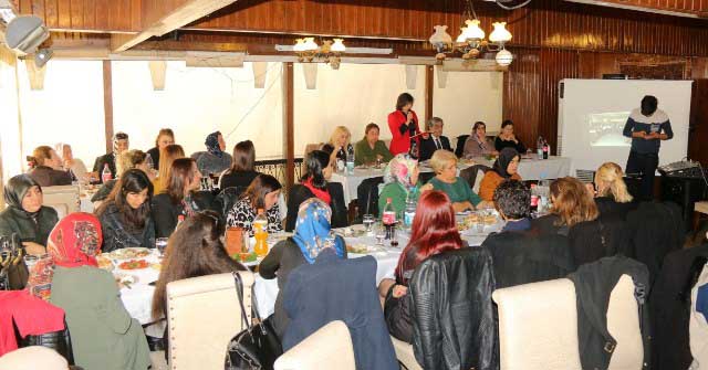 Yıl boyunca faaliyetleri gerçekleştirdikleri dava arkadaşları ile bir arada olmanın heyecanını yaşadıklarını ifade eden MHP Hatay Kadın Kolları Başkanı Dilek Demirdöven, 5 Aralık Kadın Hakları Günü’nde Hatay Kadın Kolları olarak Ankara’da makamında ziyaret ettikleri MHP Hatay Milletvekili Mehmet Ahrazoğlu’na davete katılması dolayısıyla da teşekkür ettiler. Partili kadınların yemeğinde kısa bir konuşma yapan MHP Hatay Milletvekili Mehmet Ahrazoğlu da, çalışmalarını yakından takip ettiği MHP Hatay Kadın Kolları Teşkilatını her daim takdir ettiğinin altını çizdi, önümüzdeki günlerde yapacakları faaliyetlerde başarı diledi. -Adil Yeşildağ-