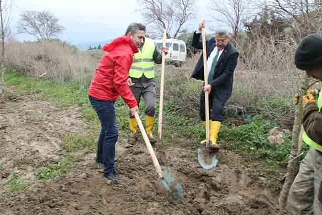 Hatay Milletvekili Hüseyin Yayman, dün sabah evinden çıktığında, üzerinde kravatlı beyaz gömleği, takım elbisesi ve boyalı ayakkabısı ile sokağa adımını attı. Ancak program dışı gelişen “fidan dikimi” etkinliği dolayısıyla, Milletvekili Hüseyin Yayman, hem çalışan işçilere eşlik etmek hem de “bu topraklarda benim de dikili ağacım, ağaçlarım olsun” diyerek, boyalı ayakkabısını çıkardı ve uzun sarı çizmeleri ayağına geçirdikten sonra, eline kazma-kürek de almak suretiyle sahaya indi, yağmurla balçığa dönüşen yol kenarlarında, fidan dikti. Hatay’da 3 ilçeye dikilmesi planlanan 15 bin Osmanlı Çınarı’nın Kırıkhan-Hassa arasındaki yola dikilen 5 bin adedi uygulama-sının devamı olarak, dün Kırıkhan, Reyhanlı ve Topboğazı Antakya Organize Sanayi Bölgesi arasına 10 bin çınar fidanı dikimine başlandı.