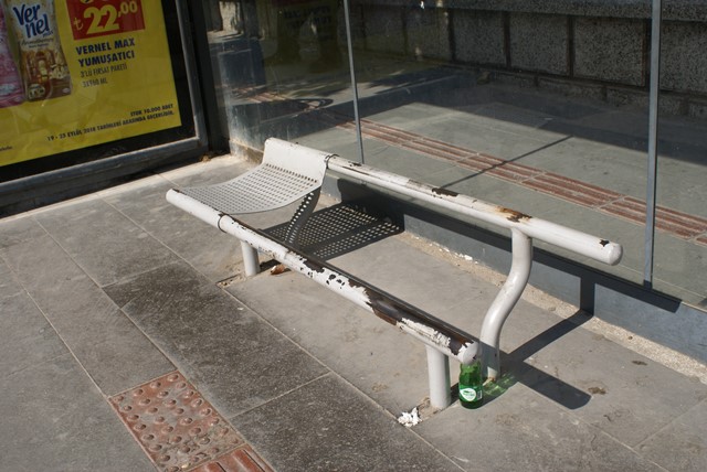 Harbiye Caddesi üzerinde Kışla karşısındaki durağı gözüne kestiren milli servet düşmanları, buradaki bankların demir aksamlı oturma yerlerini çalıp kayıplara karıştı. Milli servet düşmanları, Büyükşehri zarar uğratmanın yanında, vatandaşların yararına olan bir hizmeti yok ederek mağduriyet te yarattı.