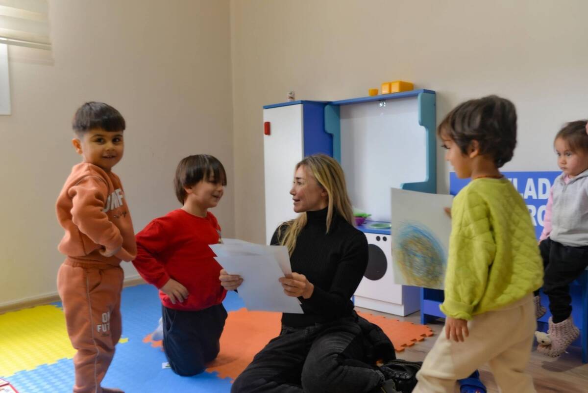 “İlk olarak Özel Yayladağı Mavi Vatan Anaokulu’nu ziyaret ederek miniklerimizle buluştuk. Çocuklarımızın hazırladığı çizimler, milli gururumuza hediye edildi.