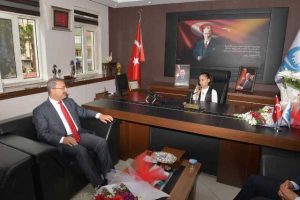 Antakya Belediye Başkanlığı koltuğuna oturan minik öğrenci SEVGİ Bök, Belediye’ye makam aracıyla geldi, zabıta kıtasını denetledi, Başkan İsmail Kimyeci’nin kendisini karşılamasının ardından da makamına geçti.