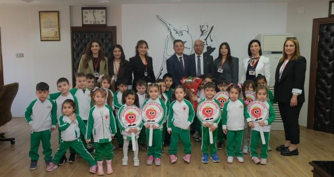 Dörtyol Çilek Çocuk Akademisi öğrencileri, Dörtyol Belediye Başkanı Bahadır Amaç’ı makamında ziyaret etti. Başkan Amaç, çocukların sevgisinin kendilerine moral ve güç verdiğini söyledi.