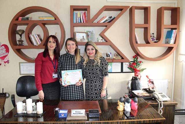 Duygu-Su Kreş Sahibi Nurcan Odacı, etkinliğe imza atan Yazar Çiğdem Harbellioğlu’na Teşekkür Belgesi de takdim etti. -Mutlu Yanık-