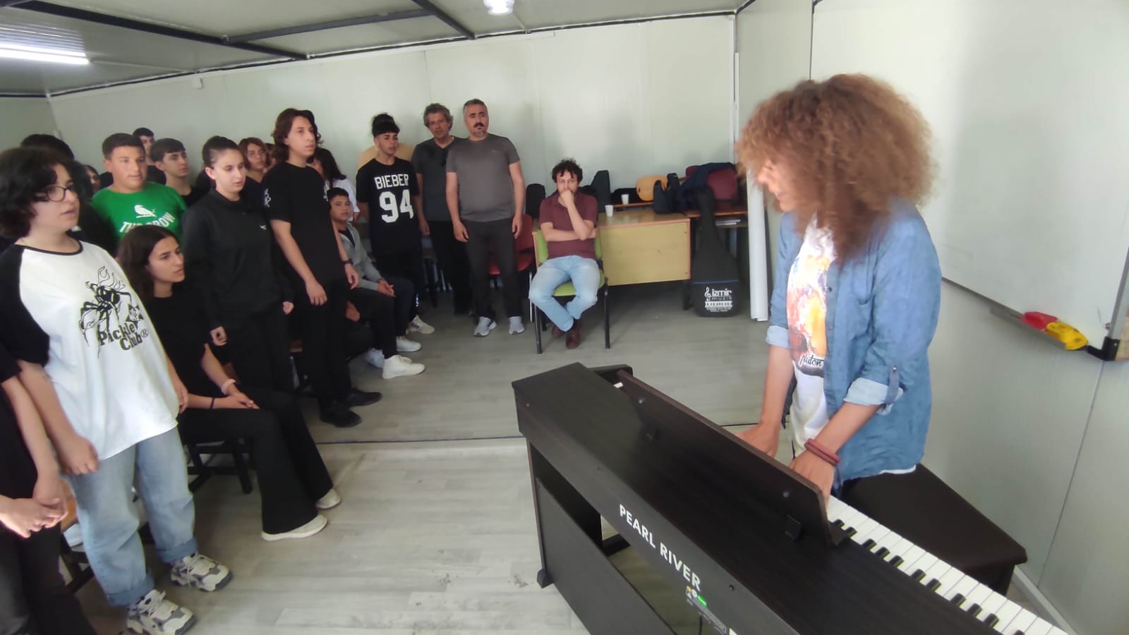 Miras Derneği Başkanı Olcay Muslu öncülüğünde düzenlenen organizasyon, genç kuşağın müziğe olan ilgisini artırmaya yönelik keyifli bir buluşmaya sahne oldu. Jazz müziğinin genç yeteneklerinden biri olan Elif Çağlar, Ekinci 3 konteyner kentte gerçekleşen etkinlikte, Bedii Sabuncu Güzel Sanatlar Lisesi öğrencileriyle bir araya gelindi.