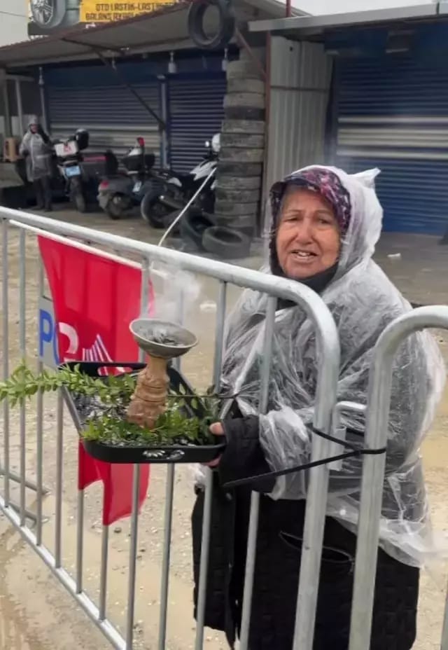 Çekmece Mahallesi’nde miting alanına yakın bir noktada bulunan yaşlı bir kadın, tütsü yakarak slogan attığı sırada içerisinde yanan kömür bulunan buhardanlığı üzerine düşürdü. O anlarda çevredeki vatandaşların “Abla yanıyorsun” uyarılarına aldırış etmeyen kadının eli ve montu zarar gördü.