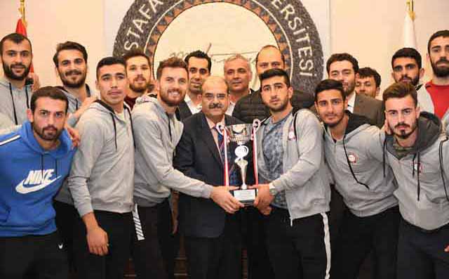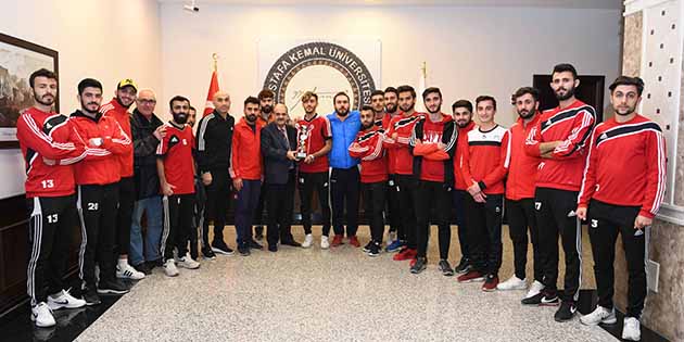 MKÜ Tayfur Sökmen Stadyumu’nun ev sahipliği yaptığı grup müsabakaları sonrasında grubunu lider bitiren Hatay MKÜ Erkek Futbol Takımı, Türkiye Üniversite Sporları Federasyonu Futbol Erkekler 1. Ligi’ne yükselme hakkı elde etti. Üniversite Rektörü Prof. Dr. Hasan Kaya, müsabaka sonrasında üstün başarı elde eden futbol takımını tebrik ederek, takım oyuncuları ile ayrı ayrı sohbet etti. -Yusuf Cemil Karaçay-