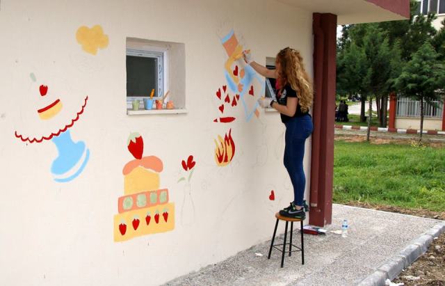 Mustafa Kemal Üniversitesi Güzel Sanatlar Fakültesi Grafik Tasarım Bölümü 3.Sınıf öğrencileri, aldıkları eğitimin gereğini en iyi şekilde hayata geçirdi ve Antakya Meslek Yüksekokulu uygulama mutfağı dış cephe duvarlarına sanatsal çalışmalarını gerçekleştirdi.