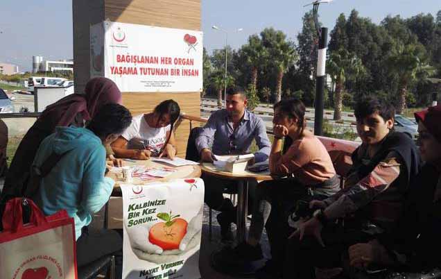 Antakya İlçe Sağlık Müdürlüğü, 3-9 Kasım Organ Bağışı Haftası kapsamında, Mustafa Kemal Üniversitesi (MKÜ) kampüsünde, Gönüllü Genç Sağlık Liderliği Ekibi ve Türk Tıp Öğrencileri Birliği’nin katılımıyla organ bağışı standı açtı. Birçok tıp öğrencisi ile gönüllü sağlık liderinin girişimi ve çabası ile üniversite öğrencilerinin organ bağışı yapmaları teşvik edildi. Komite, organ bağışı başvurularını kayda almak suretiyle resmi işlem yaptı. -Selvi Günay-