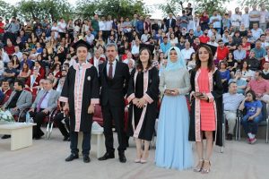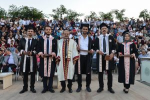 Hatay Mustafa Kemal Üniversitesi’nde (MKÜ) 2017-2018 eğitim öğretim yılı mezuniyet töreni, öğrenci ve velilerin yoğun katılımıyla coşku ve heyecan içinde gerçekleşti. Mutluluk ve hüzne sahne olan mezuniyet törenine Hatay Vali Yardımcısı Ayhan Tetikoğlu, Üniversite Rektörü Prof. Dr. Hasan Kaya, Rektör Yardımcıları Prof. Dr. Mehmet Kılınç ve Prof. Dr. Yusuf Önlen, il protokolü, fakülte dekanları, öğretim üyeleri, öğrenciler ve veliler katıldı. Saygı duruşu ve İstiklal Marşı’nın okunması ile başlayan mezuniyet töreni, üniversiteyi birincilikle bitiren Beden Eğitimi ve Spor Yüksekokulu Öğrencisi Talip Şişli’nin tüm mezun öğrenciler adına bir konuşma yapmasıyla devam etti. Üniversite birincisi Şişli, konuşmasında, eğitim süresi boyunca kendilerine her türlü desteği sağlayan ailesine ve üniversite yetkililerine teşekkür etti.