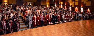 Beş yıl süre ile öğrenim gördükleri fakülteden mezun olan öğrenciler, ailelerinin katıldığı törende hüzün ve sevinci bir arada yaşadı. Coşkulu bir şekilde tören alanını dolduran mezunlara ve ailelerine seslenen Üniversite Rektörü Prof. Dr. Hasan Kaya, şunları söyledi: