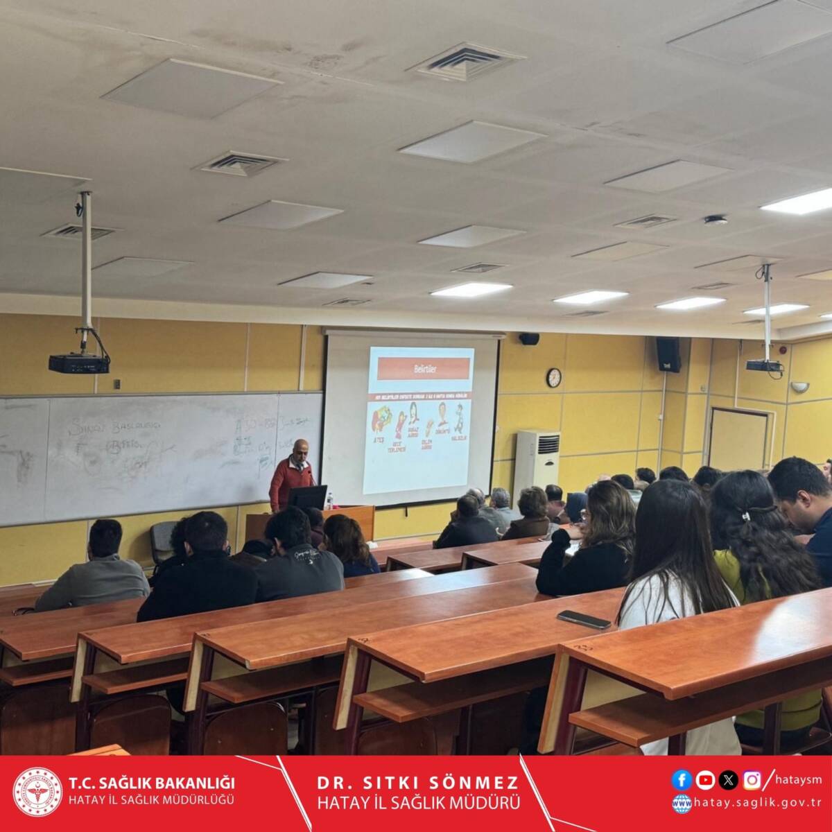 Hatay İl Sağlık Müdürlüğü, 1 Aralık Dünya AIDS Günü dolayısıyla Mustafa Kemal Üniversitesi’nde üniversite öğrencilerine yönelik kapsamlı bir farkındalık semineri düzenledi. Yoğun katılımla gerçekleşen programda, HIV/AIDS konusunda toplumsal bilinci artırmak, sağlık okuryazarlığını geliştirmek ve geleceğin sağlık profesyonellerini bilinçlendirmek amaçlandı.