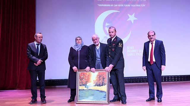 Program, hediye takdimi ve günün anısına çekilen toplu fotoğraf ile sona ererken, Rektör Prof. Dr. Hasan Kaya, program sonrası Şehidimiz Mehmet Uçar’ın ailesini makamında misafir etti. -Cemil Yıldız-