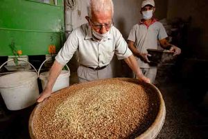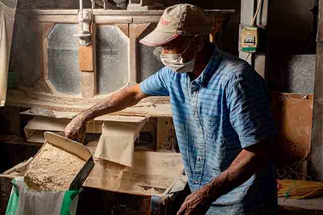 Şimdilerde artık taş değirmenler elektrikle çalışıyor ama mantığını kaybetmeden.