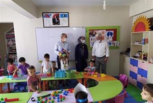 Hatay İl Müftüsü Ömer Faruk Bilgili, Antakya ilçesindeki 4-6 yaş arası miniklerin devam ettiği Kur’an kursunu ziyaret etti.