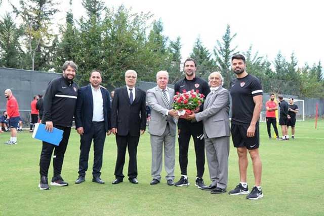 Teknik Direktör Ömer Erdoğan ve ekibi ile futbolcuları son Gaziantep galibiyeti ve alınan iyi sonuçlardan ötürü tebrik ederek kutlayan Rafet Yavrum ile Semir Yoğurçu, Kulübün Teknik Direktörü Ömer Erdoğan’a da bir buket çiçek takdim etti.