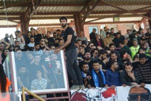 Antakya Atatürk Stadı’nda Hatayspor maçlarının fanatik sevimli taraftar grubu geçtiğimiz hafta sonunda bir sürprize imza attı. Hüseyin Yıldırım adlı gencin önderliğindeki tamamı “Siyah şort!” giyimli gençler, kentin sahibi sıfatıyla el emekleriyle “Bu kente güneş doğacak, Hatay, şampiyon olacak” yazısı yer alan büyükçe bir pankartı kapalı tribün çatısına astı.