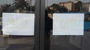 Arkeoloji Müzesi’nin eski yerinde açılması planlanan ve bu yöndeki çalışmaların sona yaklaştığı Hatay Etnoğrafya Müzesi’nde, ‘kapalıyız’ ifadesini, bu ifadenin yazılı olduğu ‘A4 Dosya’ kağıdını cama bantlayarak yapıyor oluşumuz, eleştiri konusu!