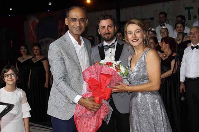 Başkan Güzel daha sonra kulise de geçerek, tüm sanatçılara tek tek teşekkür etti, Koro Şefi’ne bir buket çiçek takdim ederek teşekkür etti ve tüm enstrüman ile koristleri ve yöneticilerini kutladı.