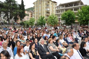 Törenin ilerleyen kısmında bu yılın mezunları adına okulda YGS’de ilk on binde dereceye giren beş öğrenci alkışlarla sahneye davet edildi. Okulun YGS’deki en başarılı 5 öğrencisi şöyle sıralandı: