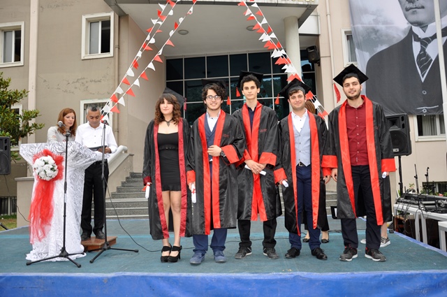 Törenin ilerleyen kısmında bu yılın mezunları adına okulda YGS’de ilk on binde dereceye giren beş öğrenci alkışlarla sahneye davet edildi. Okulun YGS’deki en başarılı 5 öğrencisi şöyle sıralandı: