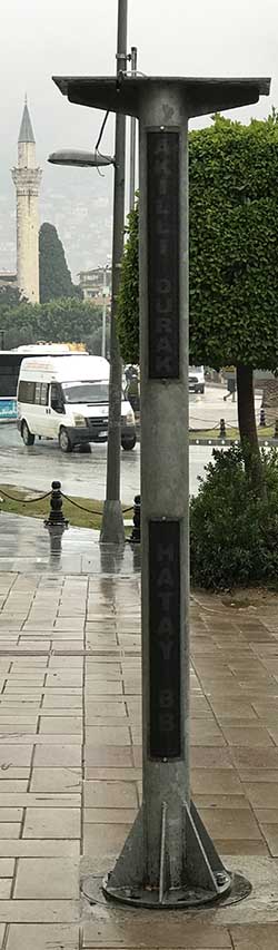 Antakya kent merkezinde, Postane durağının hemen yanı başında, yaklaşan otobüslerin numaralarını ve kalan durak sayılarını gösteren dijital pano, durak düzenlemesi kapsamında kaldırıldı. Vatandaş, hayatını kolaylaştıran dijital aparat için soruyor… Ne zaman çalışır?