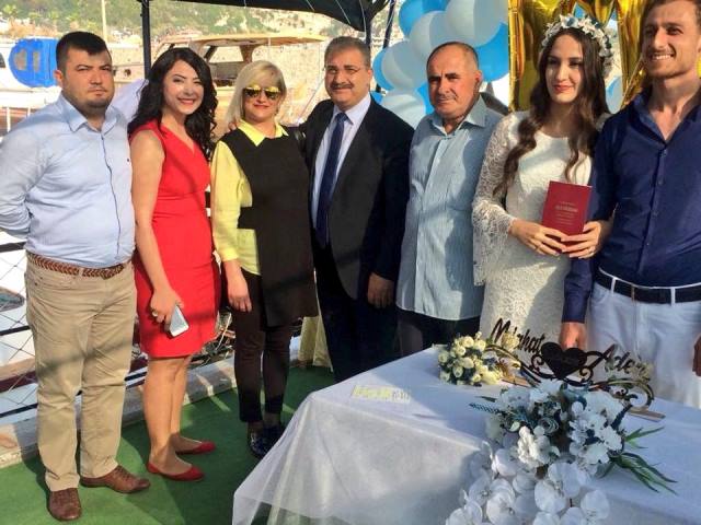 Kimyeci, belediye personeli “Ahmet Aydın ile Selda Süs” çiftinin nişan törenine katıldı, genç çiftlere nişan yüzüklerini taktı.