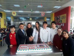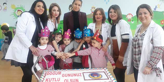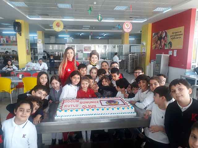 Okulun yemekhanesinde, Ocak ayında doğan tüm öğrenciler için gerçekleştirilen doğum gününde, pastalar, öğrenciler ve öğretmenlerin katılımıyla kesildi, heyecana ve mutluluğa herkes ortak oldu.