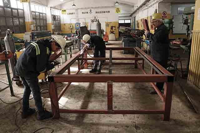 Yarıyıl tatiline rağmen okulun atölyesinde çalışmayı sürdüren metal teknolojileri bölümü 11’inci sınıf öğrencilerinden Süleyman Tobak, arkadaşlarıyla makinenin tezgahını yaptıklarını aktardı.