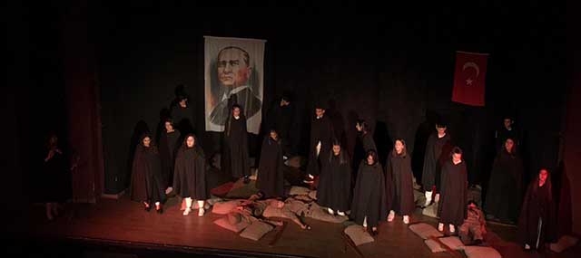 Oyunun sonundaki teşekkür konuşmasında Pınar Kuş, desteğini tiyatro topluluğundan, esirgemeyen okul müdürü Mehmet Nur’a teşekkürlerini ilettikten sonra, turizm lisesinin eğitim-öğretim süresinin kısalığından dolayı bu okulda öğretmen ve öğrenci olmanın zorluğundan söz etti, hem ders tamamlama hem de etkinlik yapmak için kısıtlı zaman kaldığını ifade etti. Öğretmen Pınar Kuş, bu yoğunluğa rağmen beş ayda böyle bir oyuna profesyonelce hazırlandıkları için öğrencilerini tebrik etti, Atatürk’ün izinden gittiklerini ve “Az zamanda çok büyük işler” yaptıklarını vurgulayarak herkese teşekkürlerini iletti.