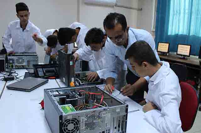 Hassa ilçesinde, öğrenciler, bir yandan meslek öğrenirken, öbür taraftan “Kırsalda teknolojik kalkınma projesi” kapsamında köy okullarındaki bilgisayarların bakım ve onarımını yapıyor.