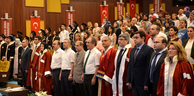 Mustafa Kemal Üniversitesi (MKÜ) Eğitim Fakültesi 2016-2017 Eğitim öğretim yılı mezuniyet töreni; Rektör Prof. Dr. Hasan Kaya, Rektör Yardımcıları Prof. Dr. Mehmet Kılınç, Prof. Dr. Yusuf Önlen, Prof. Dr. Veysel Eren, akademisyenler ve ailelerin yoğun katılımıyla Atatürk Konferans Salonu’nda gerçekleştirildi. Öğretmen adaylarının bu heyecanlı gününde programın açılış konuşmasını yapan Eğitim Fakültesi Dekan Yardımcısı Yrd. Doç. Dr. Servet Hali, şunları söyledi: